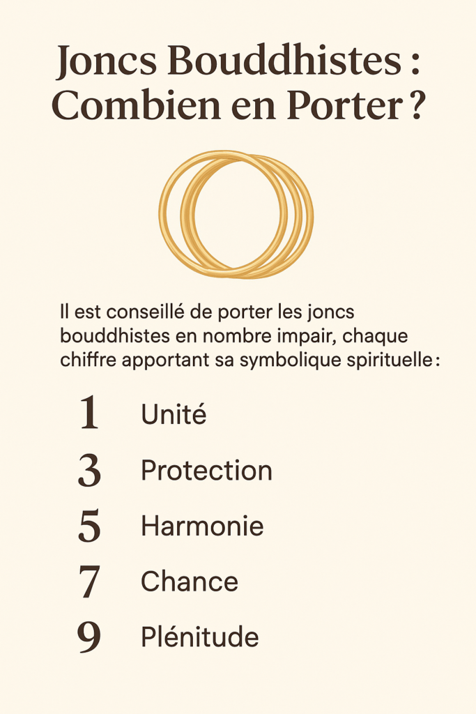 On peut tout à fait superposer ou combiner plusieurs joncs : différentes épaisseurs, couleurs, motifs. Il n’y a pas de “nombre fixe” obligatoire, l’essentiel est de trouver une harmonie visuelle et un confort.