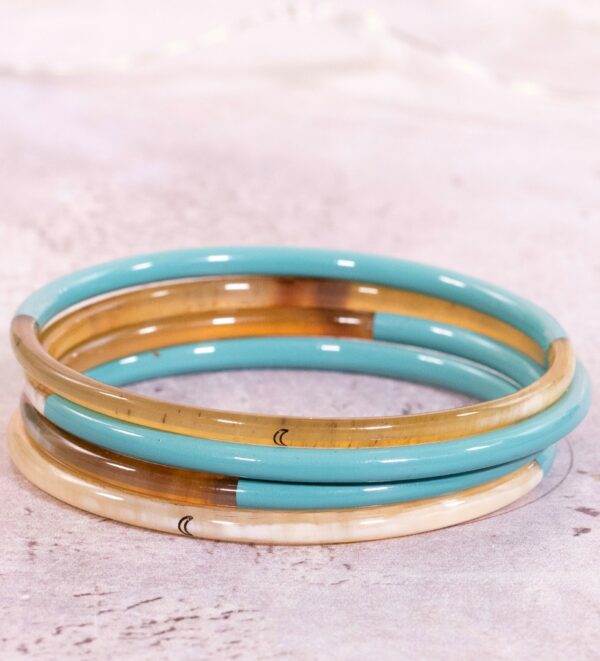 “Les Discrets”: Bracelets en corne aux coloris de saison.