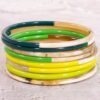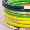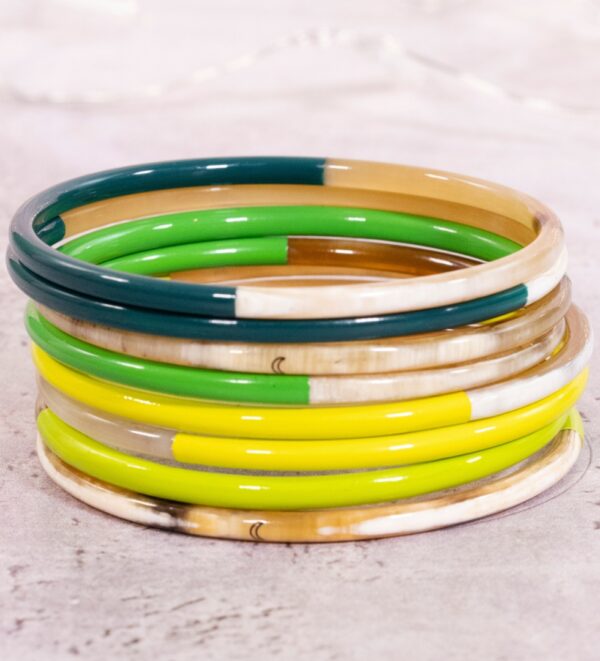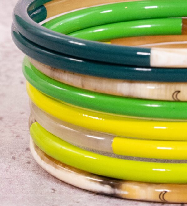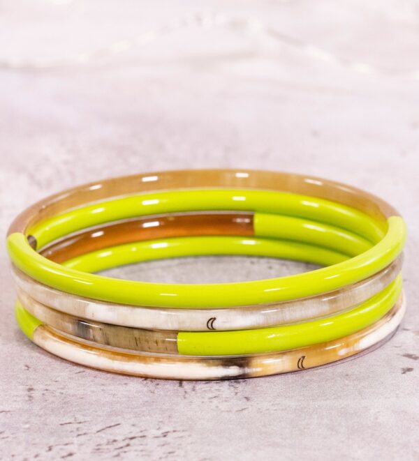 “Les Discrets”: Bracelets en corne aux coloris de saison.