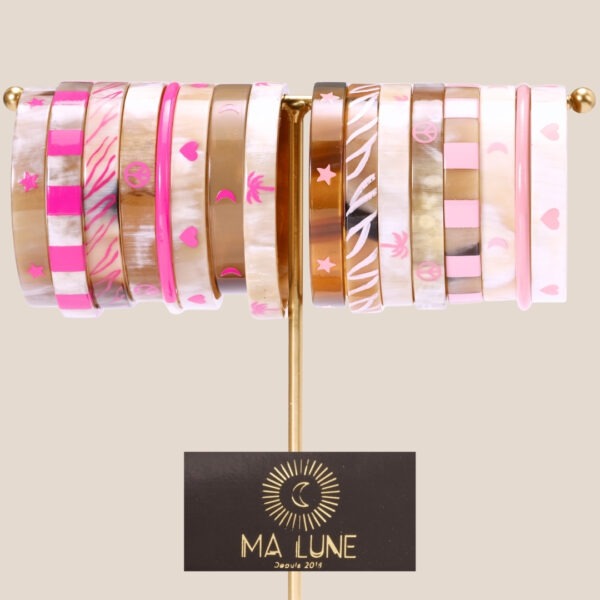 Collection EXCLUSIVE de nos jolis Joncs en corne upcyclée!!💜💛💚 🌙🌈 Les PASTELS – Une palette de coloris tendres et fruités.