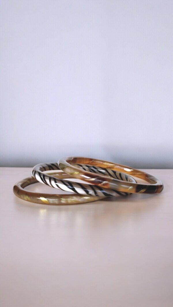 ** Taille unique: Diametre entre 63 et 65 mm ** Coloris de corne aléatoire ** Fait à la main à partir de cornes upcyclée *** A porter seul ou associés à nos JolisJoncs bouddhistes.