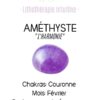 L’améthyste aide à atteindre l’élévation spirituelle en favorisant la concentration et la méditation. Elle permet de lutter contre les pensées négatives et stimule l’imagination et la créativité et favorise les rêves.