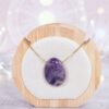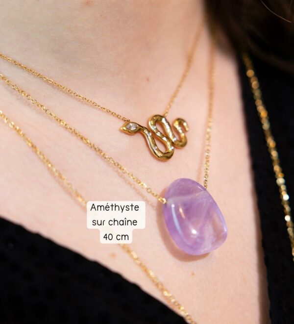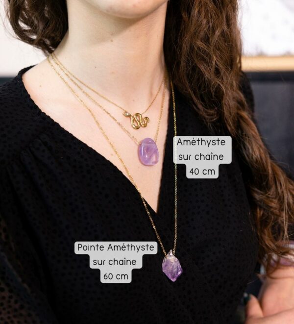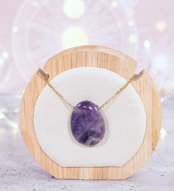 Pierre percée Améthyste , forme goutte – S election “ MonCollierlitho “. > Mots clefs: Guérison douleurs articulaires musculaires / Sommeil réparateur / Soulage maux de tête