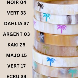 Collection exclusive pour mettre un air de vacance à votre poignet !!!  Parfait pour les voyageuses qui rêves de plages et de cocotiers. Superbe en manchette composée avec d’autres joncs aux couleurs assorties et nos joncs bouddhistes. Corne upcyclée Chaque dessin est réalisé à la main 1 cm de largeur Peint à la main au Vietnam Modele original exclusif Artisanat solidaireCollection exclusive pour mettre un air de vacance à votre poignet !!!  Parfait pour les voyageuses qui rêves de plages et de cocotiers. Superbe en manchette composée avec d’autres joncs aux couleurs assorties et nos joncs bouddhistes. Corne upcyclée Chaque dessin est réalisé à la main 1 cm de largeur Peint à la main au Vietnam Modele original exclusif Artisanat solidaireLargeur: 10 mm Epaisseur: 4 mm Coloris corne naturelle / laque colorée Dessiné à la main ** VENDU A L’UNITE !!!! Taille UNIQUE: 63 à 65 mm de diamètre L’artisanat de la Corne est une tradition au Vietnam, tout comme la peinture à la laque. Les cornes sont ramassées puis transformées en bijoux ou autres petits accessoires . Largeur: 10 mm Epaisseur: 4 mm Coloris corne naturelle / laque colorée Dessiné à la main ** VENDU A L’UNITE !!!! Taille UNIQUE: 63 à 65 mm de diamètre L’artisanat de la Corne est une tradition au Vietnam, tout comme la peinture à la laque. Les cornes sont ramassées puis transformées en bijoux ou autres petits accessoires .