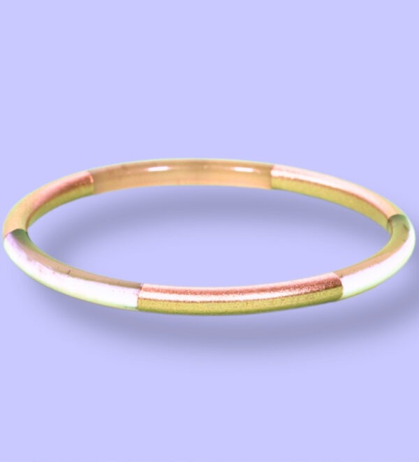 Jonc en métal de 5 mm d’épaisseur avec trois bandes de couleur bleu sur fond violet.
