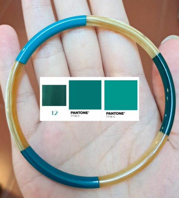 > Coloris: corne naturelle – 3 bandes de différents verts
