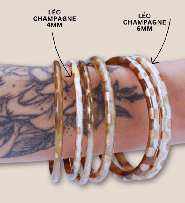 6 mm / peinture champagne / Motif Leo / vernis de protection