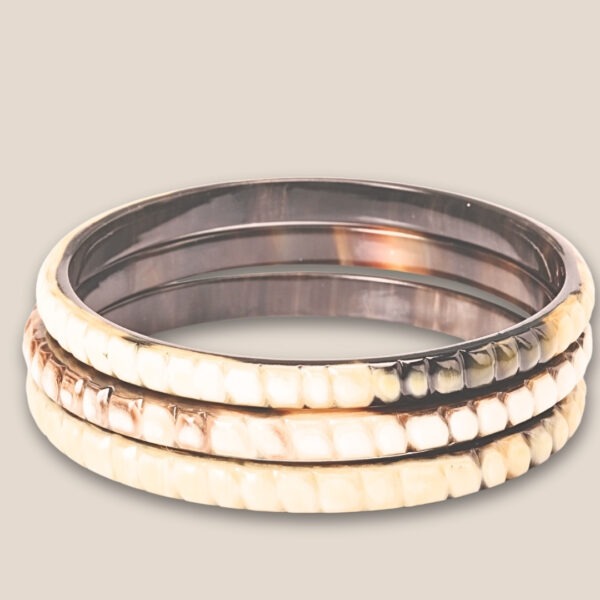 Tu peux porter le bracelet corne blanc gravé lune seul pour un rendu minimaliste et raffiné. Toutefois, il s’associe aussi parfaitement avec nos jolis joncs bouddhistes pour créer un jeu de contrastes et un style plus affirmé. Ainsi, tu adaptes ton bijou à tes envies du moment.