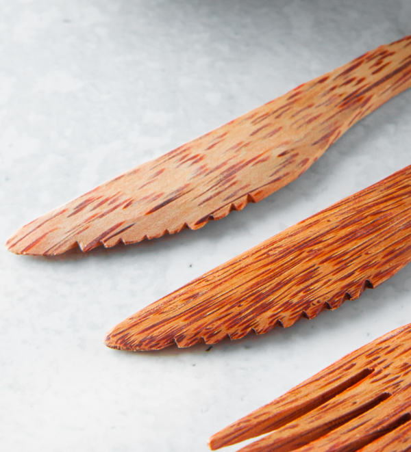 Ce couteau est fabriqué en bois de cocotier. Sa belle couleur et ses veinures ont un rendu unique.