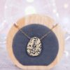 Pierre percée Jaspe dalmatien , forme goutte – S election “ MonCollierlitho “. > Mots clefs: Stress et anxiété/ Endurance physique / Elimination des toxines