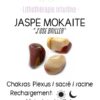 Il s’agit d’une sous-variété de jaspe, mélange de silice et d’argile blanche. Les aborigènes d’Australie lui attribuent des pouvoirs protecteurs. Le jaspe mokaïte renforce aussi la confiance en soi et apporte du courage. >Spiritualité:
