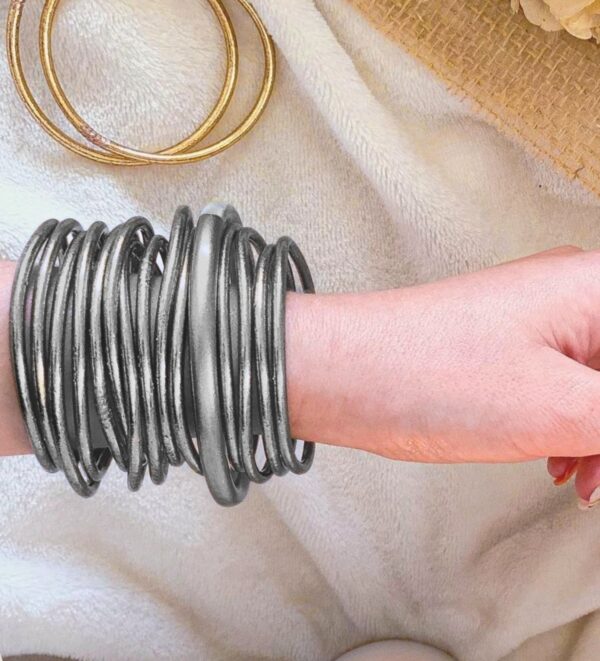 Découvrez notre jonc bouddhiste fin en coloris ARGENT ANTIQUE, une pièce élégante qui allie spiritualité et style.