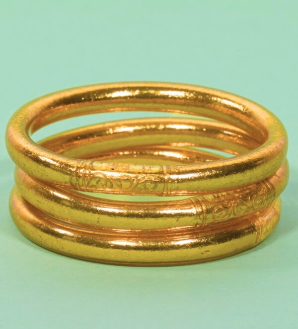 Connus sous le nom de « kumlaï », traduit du Thaïlandais par bracelet en or.  Ils sont remplis manuellement à l’aide d’une technique secrete avec les mêmes feuilles que celles utilisées pour décorer les statuts de Bouddha. Ensuite, ils sont bénis par les moines dans les temples bouddhistes. Une tradition ancestrale qui profère un aura particulier à ces bijoux porte bonheur.