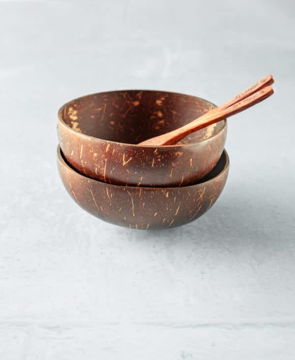 Il est composé de 4 pièces. – 2 bols coco lisses – 2 cuillères en bois de coco