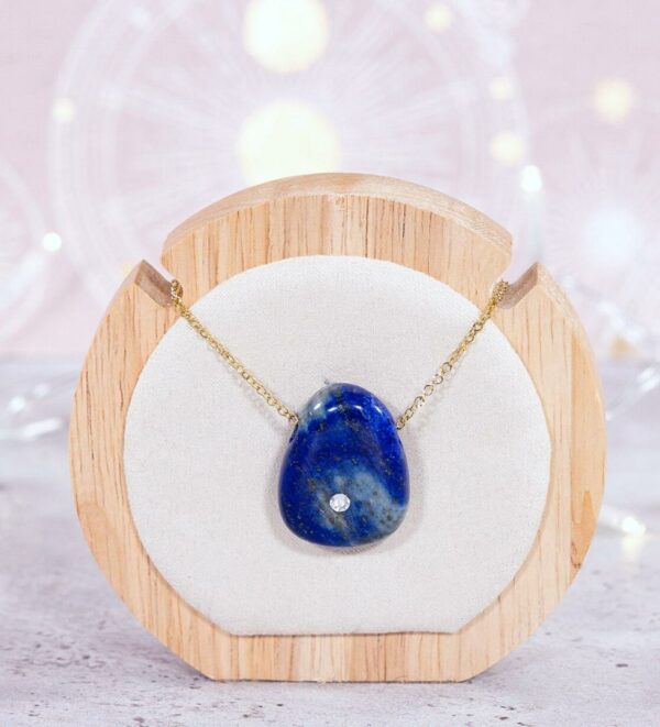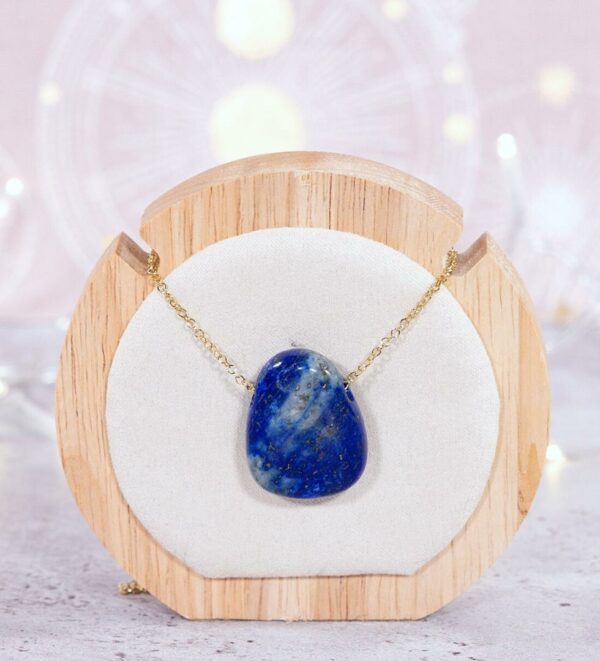 Pierre percée Lapis Lazuli, forme goutte – Selection “MonCollierlitho“. > Mots clefs: Propriétés apaisantes/ Dépassement des peurs / Soulage maux de tête