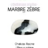 Le marbre zèbre revitalise les zones du corps fatiguées. Il a des propriétés thérapeutiques sur la rate, les reins et les intestins. Il apaise les allergies et joue également un rôle dans les soins cutanés.