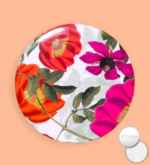 Miroir de poche, de sac…. décoré d’un motif “Big Flower” indémodable.