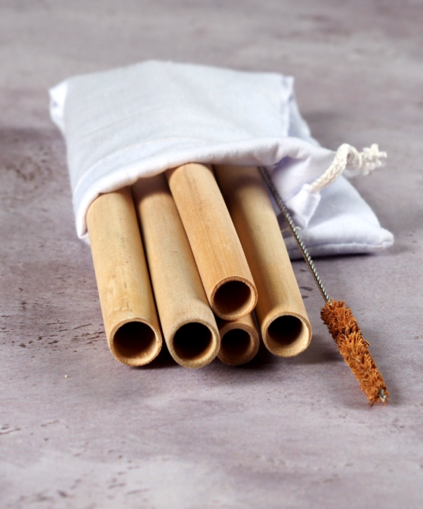 Lot de 6 larges pailles en bambou.
